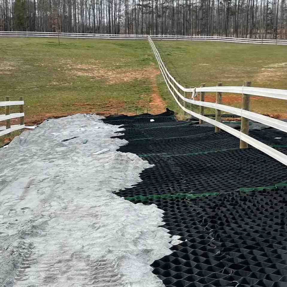 LIGHTHOOF panels eliminate mud by supporting a layer of compacted gravel for your horse to walk on. Each panel is 6’ wide by 12’ long and is made up of 3” tall cells. The diameter of each expanded cell is approximately 5.5". Each panel weighs approximately 24 lbs. Volume pricing is automatically applied at checkout.