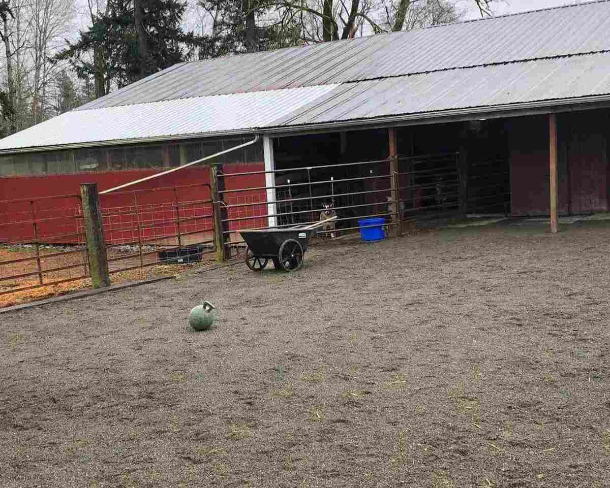 "After 27 Maritime NW winters, we finally have a dry area in the worst paddock, where the downhill slope to the barn (original owner's plan) and rainfall (8" this January alone) defeated even Fren...