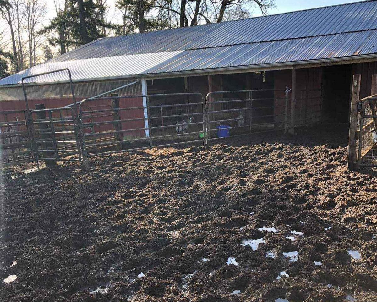 "After 27 Maritime NW winters, we finally have a dry area in the worst paddock, where the downhill slope to the barn (original owner's plan) and rainfall (8" this January alone) defeated even Fren...